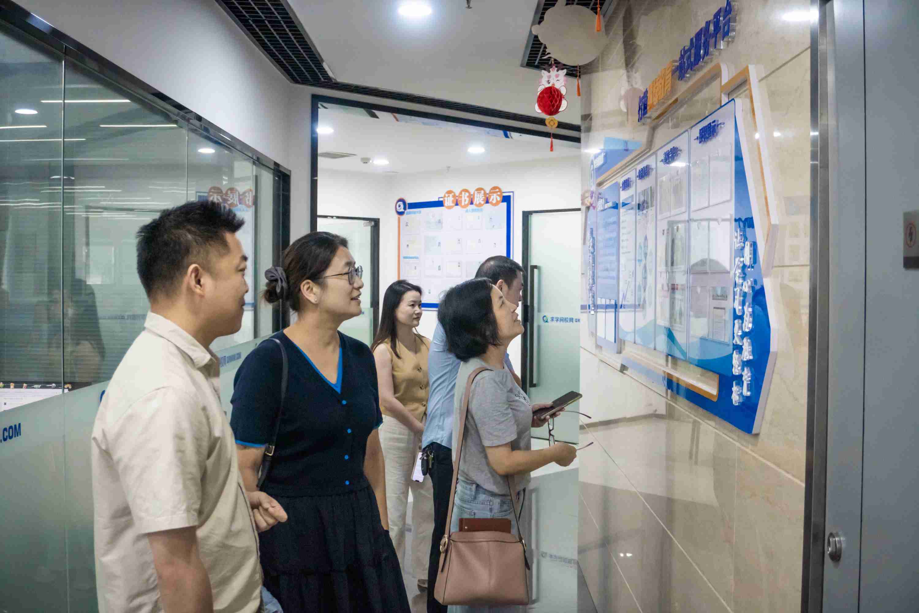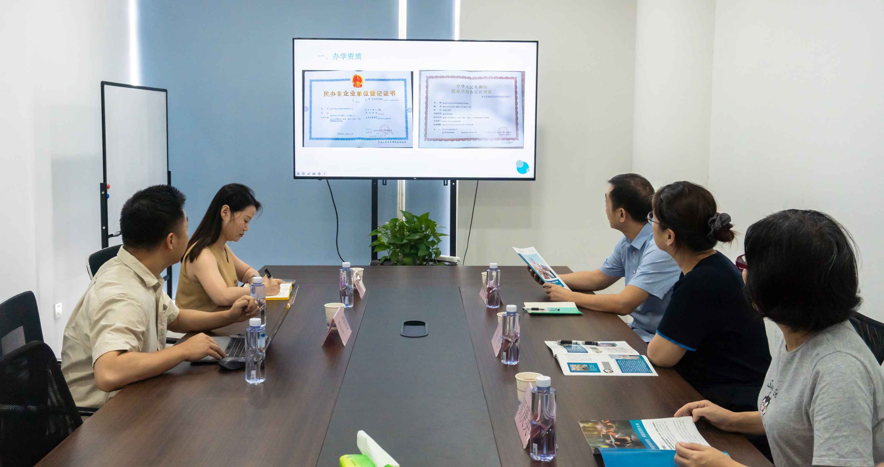 领导团队对我校办学资质、教学条件、服务设施以及办学场地、文化墙建设等整体环境进行了参观。对我校办学情况、师资情况、教学场地、安全保障措施等进行了整体参观,对我司的发展历程及现有的教务工作及服务支撑做了详细的了解,既对后续双方的紧密合作表示期待,又对今后的合作充满了信心。