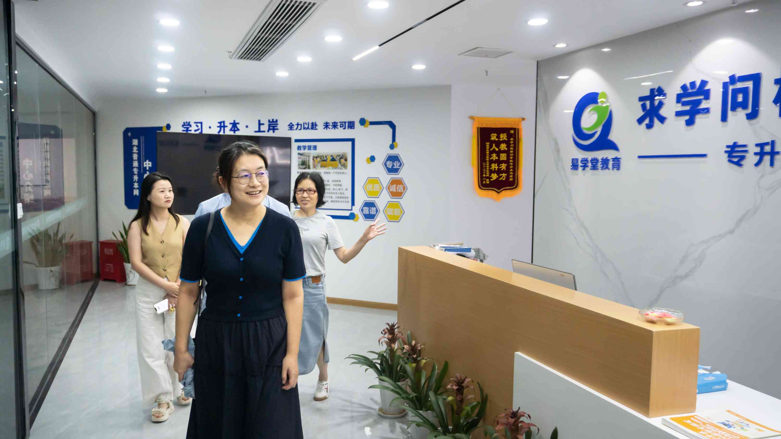 2024年9月6日上午,湖北工业大学继续教育学院副院长吴艳、何苗苗老师、贺庚英老师等领导莅临我校指导工作,武汉求学问校培训学校负责人邓健,副校长周威等陪同考察,他们的到来不仅为我校注入了新的动力,更为我校老师带来了无限的鼓舞和激励。